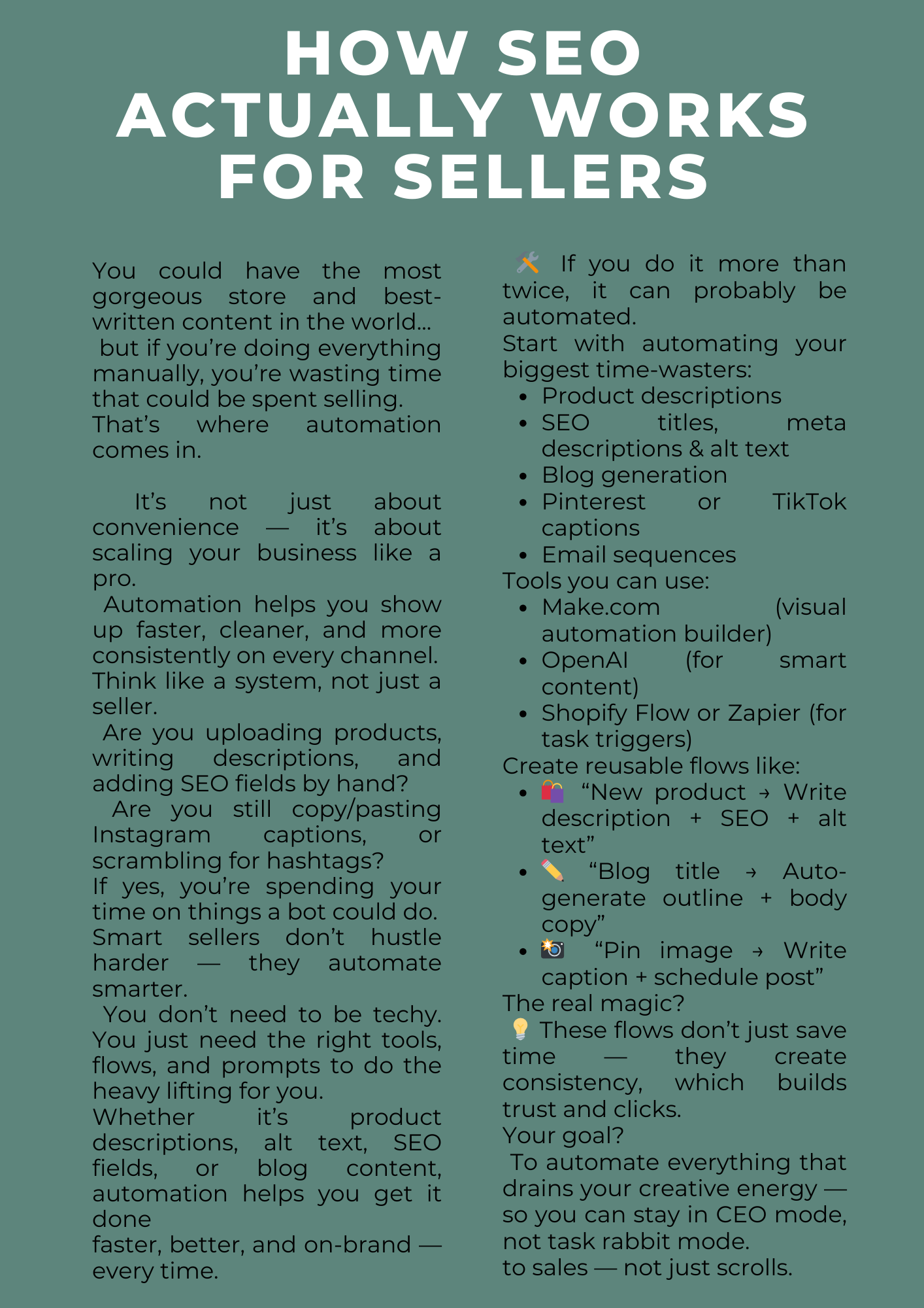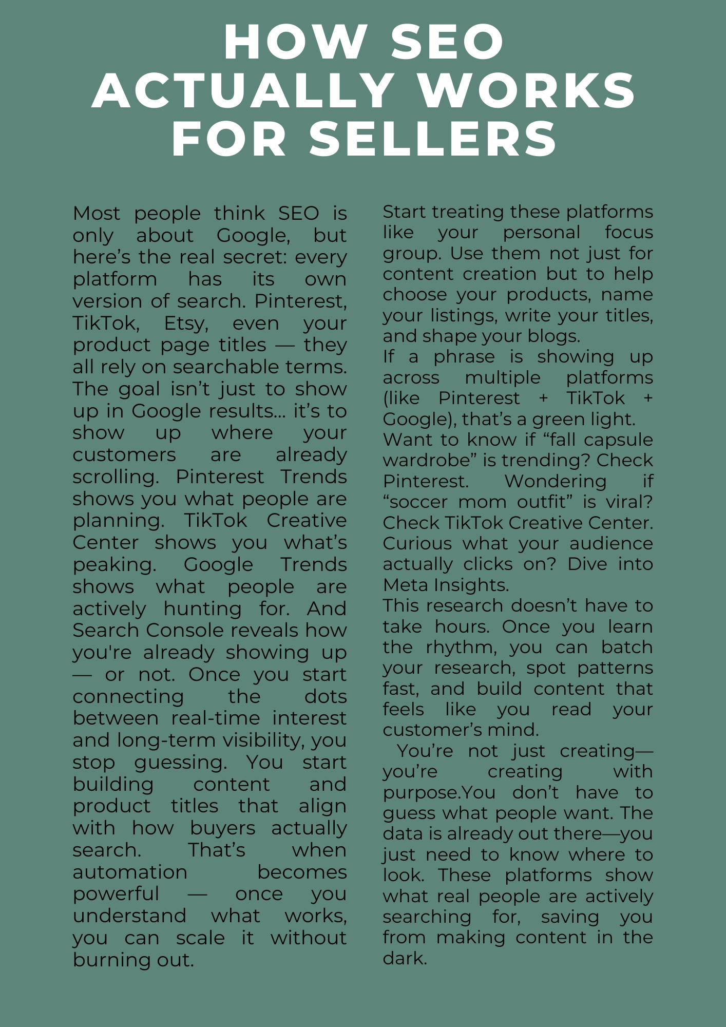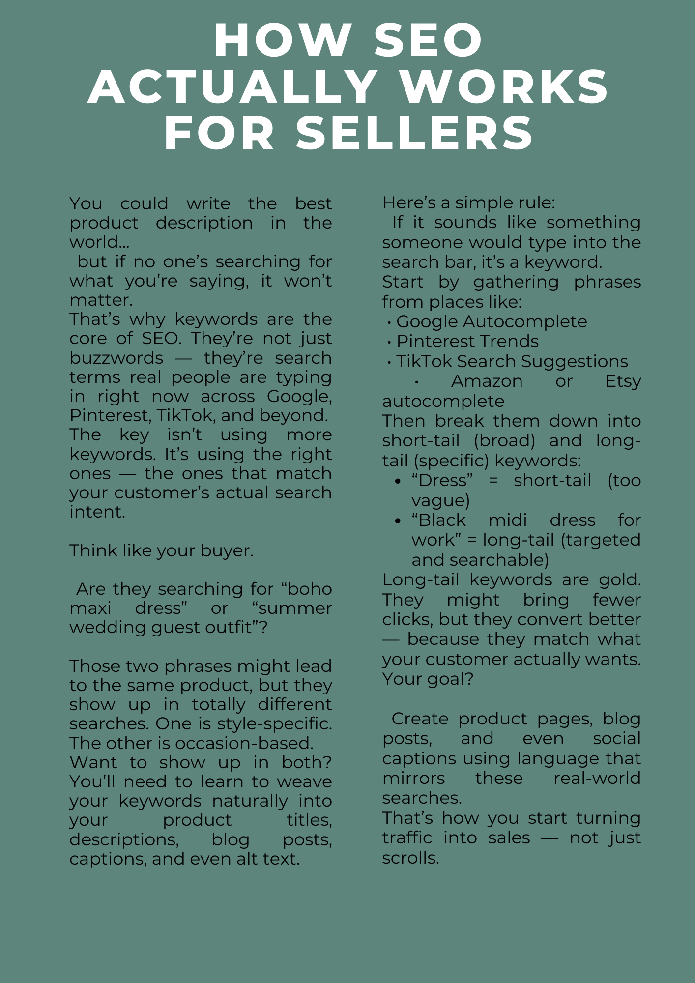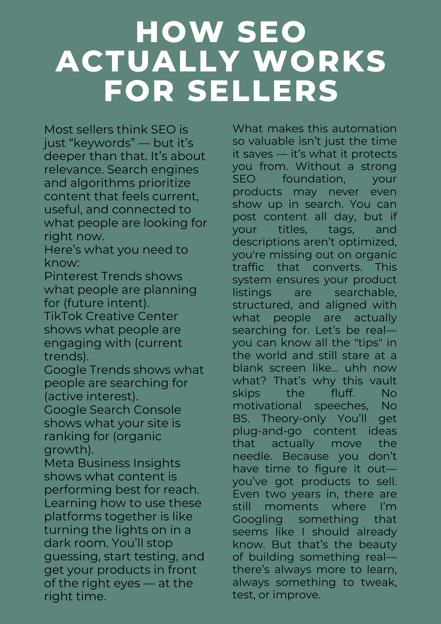 Tailored for beginners, this beautifully designed landing page ebook breaks down the essentials of SEO in a way that’s clear, non-techy, and instantly actionable. Whether you're running a boutique, Amazon storefront, or launching digital products, this is your ultimate starting point.