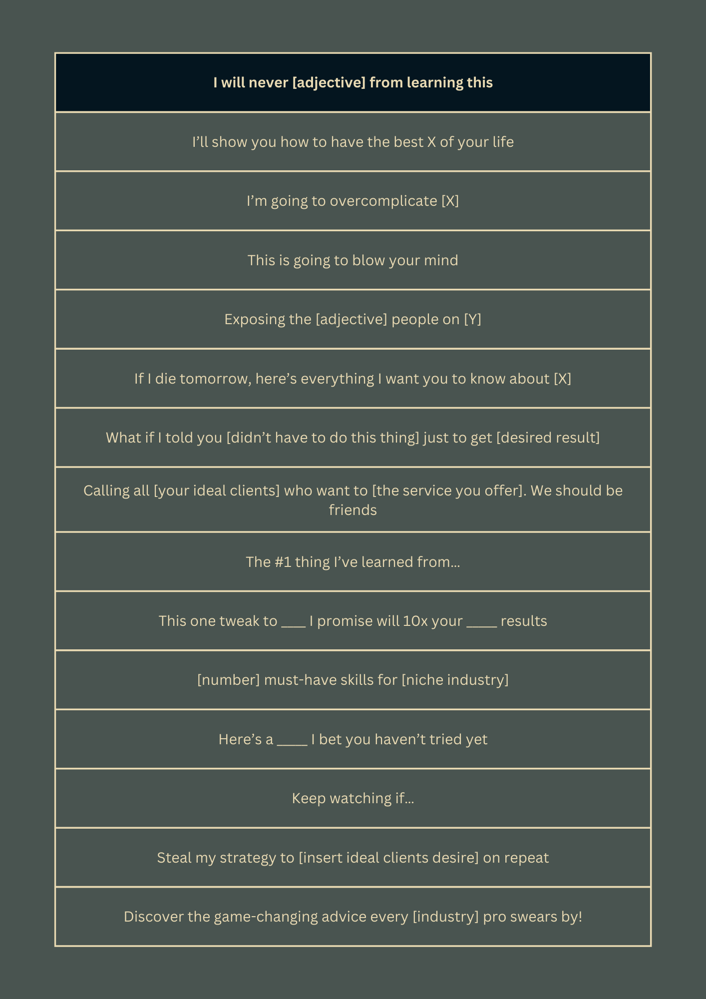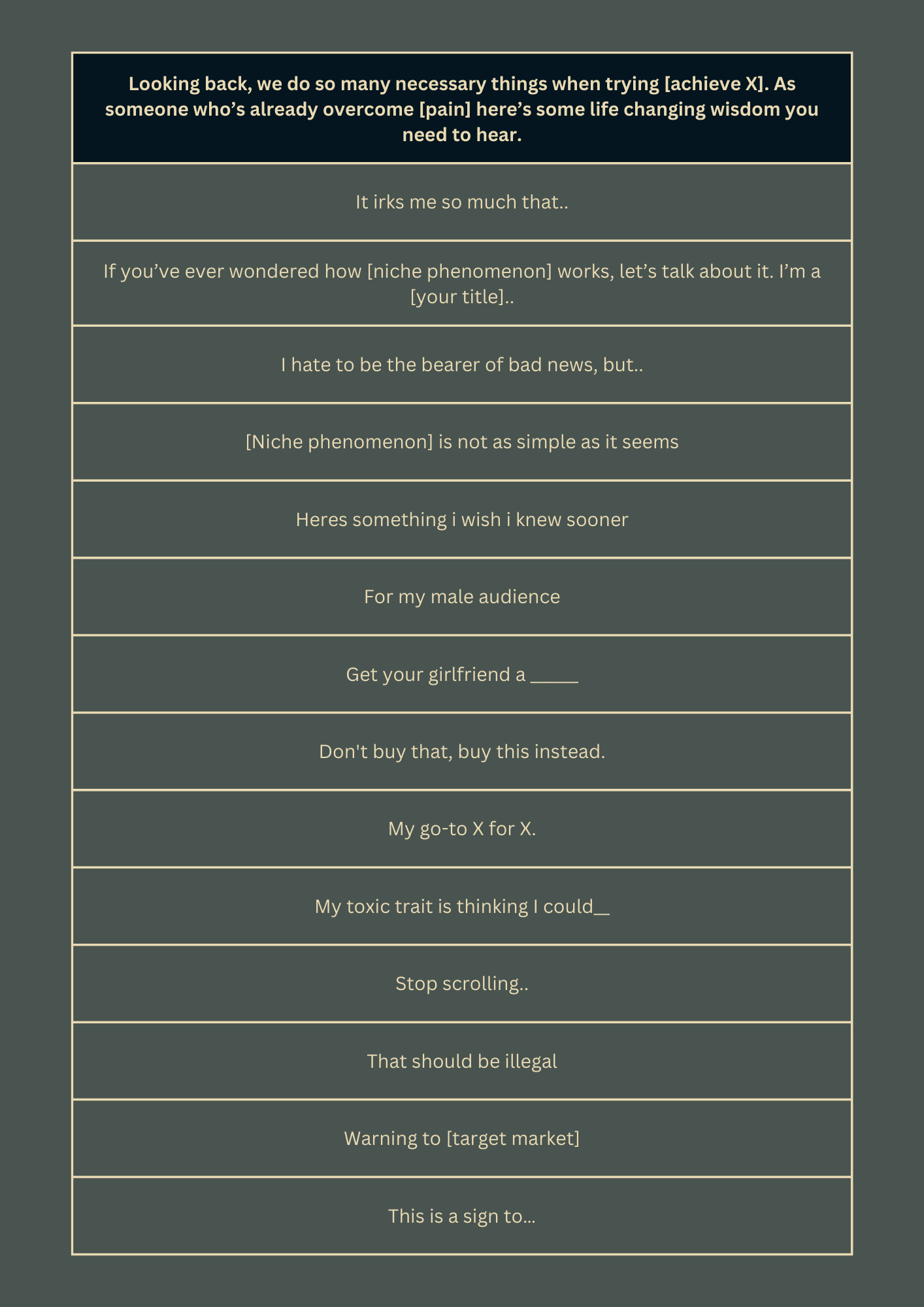Stop wasting time staring at a blank caption. With Swipe • Like • Hooks, you’ll always have a high-performing opener ready to go — helping you hook your audience and grow your sales.